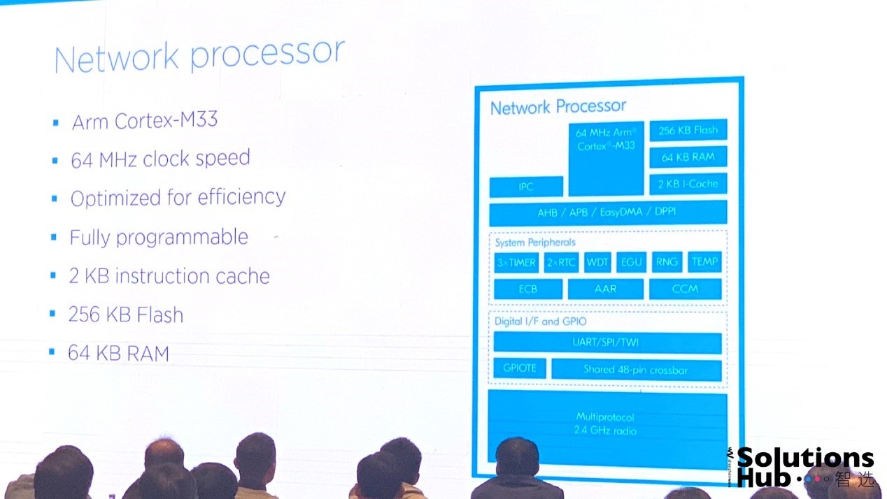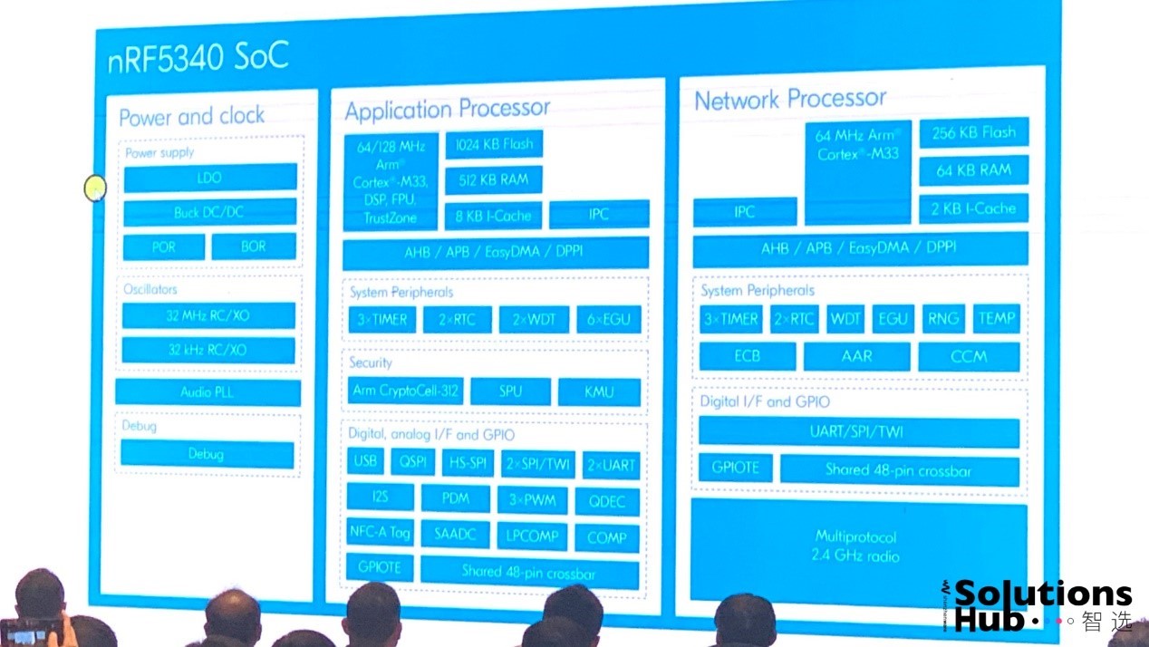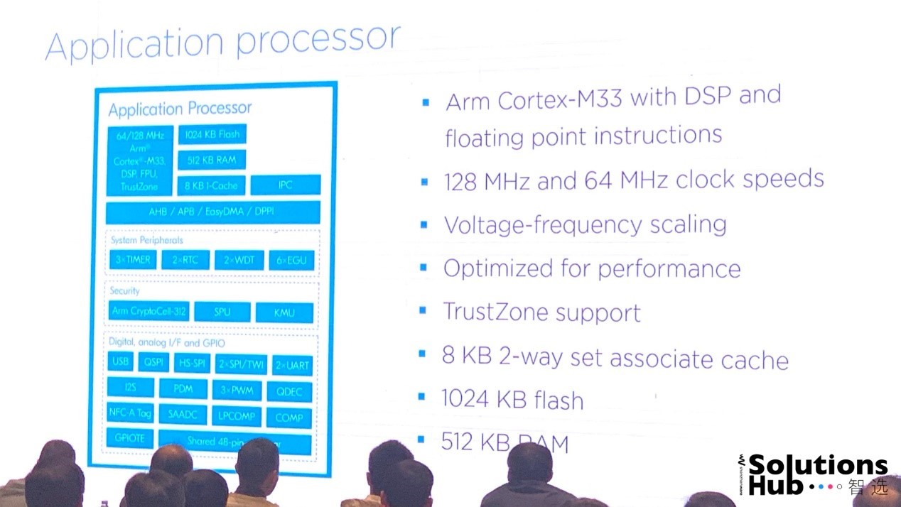 The nRF5340 launched this time, the main processor Application processor is responsible for the calculation of complex functions and bluetooth protocol stack. It adopts the Arm architecture -m33 under the Arm architecture that has always been used by Nordic, and mounts DSP and floating point functions at the same time, which can be used for third-party development and Application. The kernel runs at up to 128 MHz, supports voltage and frequency regulation, and contains dedicated 1 MB of flash memory and 512 KB of RAM memory, which can meet the needs of the next generation of cutting-edge wearable devices and significantly improve performance over the previous generation of nRF52840.