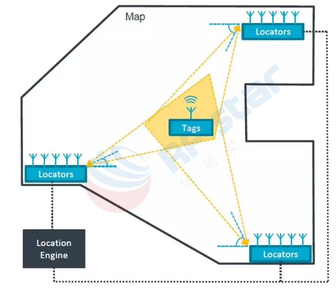 The arrival angle of the beacon signal can be measured by multiple antennas after confirmed the location area range. Combined with triangulation positioning, the accurate position of beacon equipment can be calculated.