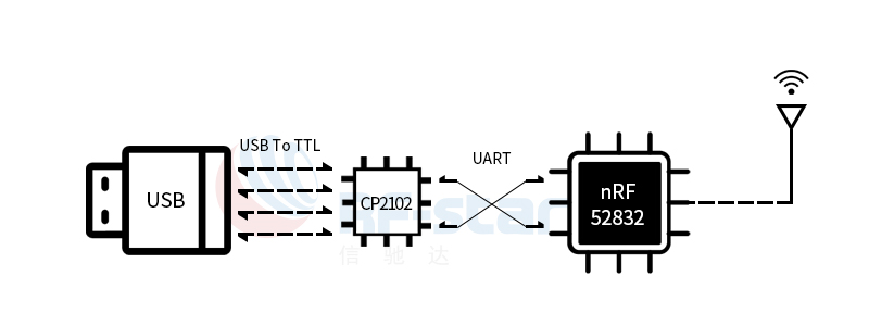 The nRF52832 Sniffer RF-DG-32A launched by RF-star adopts CP2102 and nRF52832 dual chips, and the nRF52832 Sniffer integrated Silicon Labs industrial-grade USB to TTL chipset CP2102 which supports independent LED indication during transmission and receiving. The USB interface uses CP2102 chip, transfers to TTL through USB, and then connects to nRF52832 chip through UART.