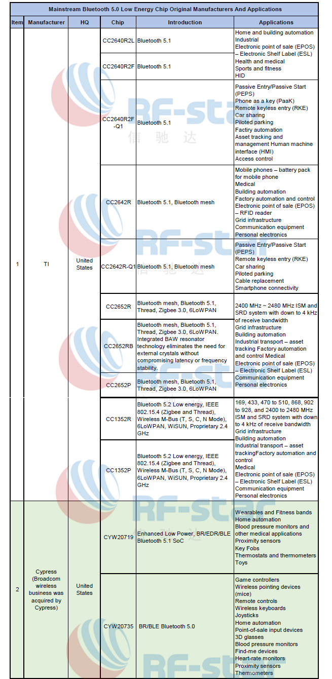 Bluetooth 5.0 Low Energy Chip Manufacturers and the Applications