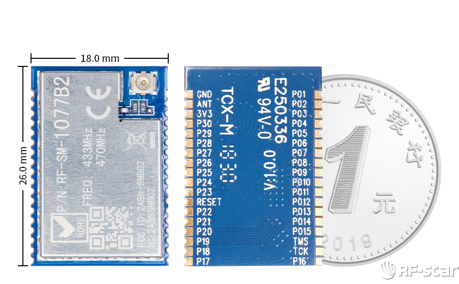 RF-SM-1077B2 Sub-1 GHz模塊是基于TI CC1310,它結(jié)合了一個靈活的,低功率的RF收發(fā)器與一個強(qiáng)大的48 MHz ARM Cortex-M3微控制器。支持多個物理層和RF標(biāo)準(zhǔn),專用的無線電控制器Cortex-M0處理RF協(xié)議命令存儲在ROM或RAM中。RF-SM-1077B2集成了24.0MHz晶體、balun、帶通濾波器、天線匹配和IPEX天線匹配,使得模塊成本低、功耗低、無線通信時間長。支持點(diǎn)對點(diǎn)、點(diǎn)對多點(diǎn)串口透傳。