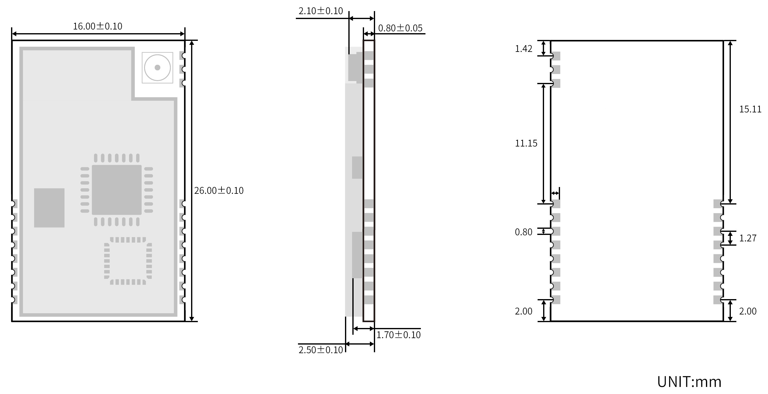 Dimension | 26.0 mm x 16.0 mm x (2.5 ± 0.1) mm |