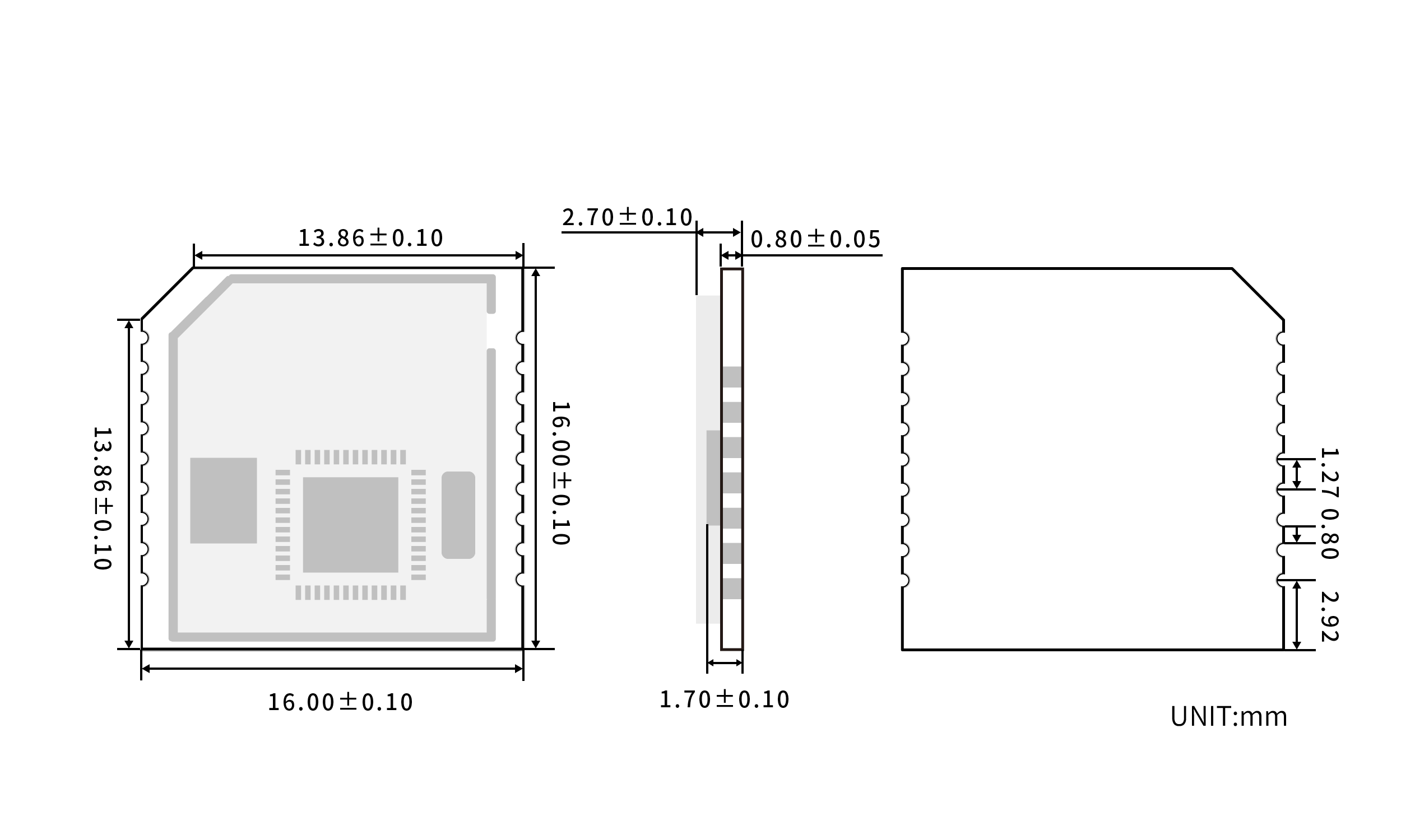 Dimension | 16.0 ′ 16.0 ′ 2.7 | mm |