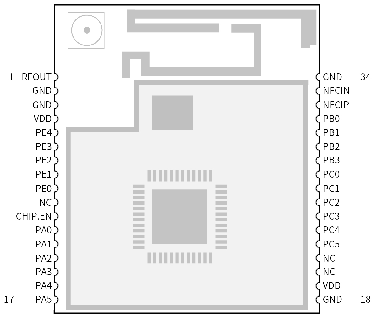 RF-WM-11AFB1 is a PCB module based on Realtek Wi-Fi SoC RTL8711AF of CortexTM-M3 core at 83 MHz. This module has on-chip 512 KB RAM and 1 MB flash, a pin-out of peripherals of SDIO, SPI, UART, I2C, I2S, and GPIOs. It has integrated a 40 MHz crystal, an on-board PCB antenna, and an IPEX/ U.FL connector for connecting to an external antenna. It supports 2.4 GHz 802.11 b/g/n at 20 MHz channel bandwidth with 75 Mbps maximum data rate. The module comes with a pre-programmed serial interface data communication protocol and an AT commands set to minimizes users’ effort to establish the data link to their existing MCUs or processors. It supports STA, AP, and STA + AP concurrent modes, advanced security features include Wi-Fi WEP, WPA, WPA2, and WPS2 with MD5, SHA-1, SHA2-256, DES, 3DES, and AES security engines.
