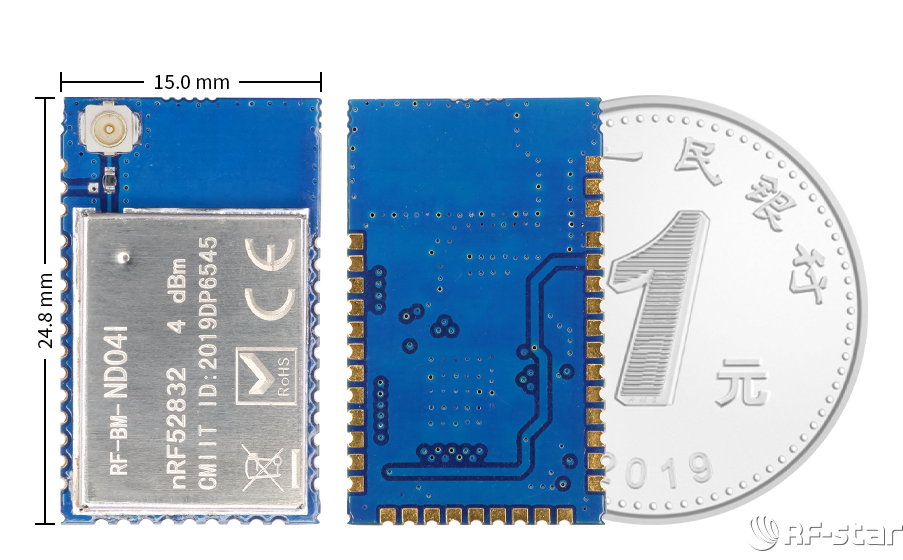 RF-BM-ND04I(IPEX外置天線)是基于Nordic nRF52832芯片開發而來的,支持BLE 5.0、Proprietary、ANT、NFC協議,擁有ADC、PDM、PWM、I2C、I2S等多種數字外設接口,可在運動器材、控制器及監控設備等不同的應用中工作,應用場景廣泛。此外,該BLE藍牙模塊內置默認藍牙5.0UART串口透傳固件,支持主從一體,一主多從連接模式,方便易用。