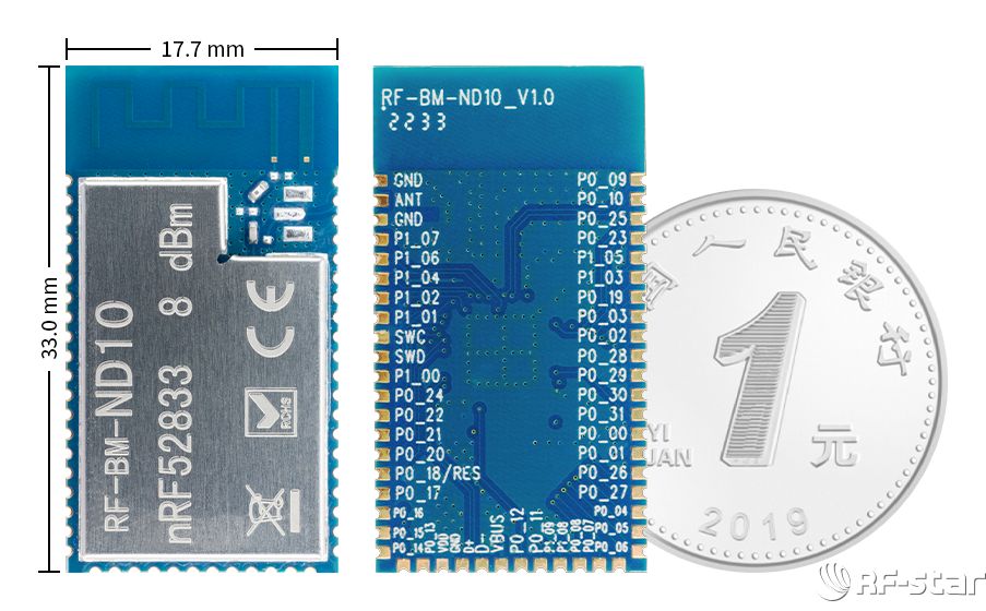RF-BM-ND10基于NORDIC nRF52833無(wú)線SoC開發(fā)而來(lái),支持BLE 5.4、Proprietary、Thread、Zigbee、ANT、NFC協(xié)議,應(yīng)用場(chǎng)景廣泛。豐富的產(chǎn)品線、完整的配套資料是NORDIC低功耗藍(lán)牙模組的優(yōu)勢(shì)。