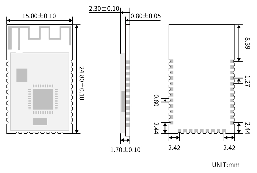 Dimension | 24.8 mm x 15.0 mm x (2.3 ± 0.1) mm |