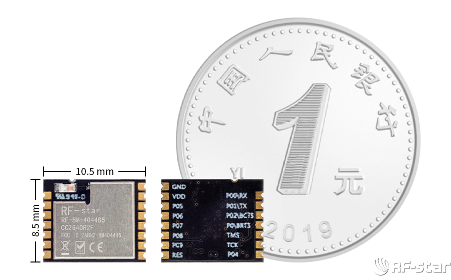 深圳信馳達藍牙模塊RF-BM-4044B5 是基于TI公司 CC2640R2F 芯片研發的微型低功耗藍牙(BLE)射頻模塊,具有功耗低、體積小、傳輸距離遠、抗干擾能力強等特點,擁有陶瓷天線,默認支持藍牙5.0串口透傳固件,可廣泛應用于便攜式穿戴設備、醫療中。