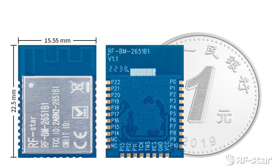 RF-BM-2651B1是信馳達科技基于TI CC2651R3芯片自主研發的SimpleLink多協議2.4G無線模塊。采用48 MHz ARM&amp;amp;amp;amp;amp;amp;amp;amp;reg; Cortex&amp;amp;amp;amp;amp;amp;amp;amp;reg;-M4F高性能處理器,RAM 40 KB,Flash 352 KB,發射功率+5 dBm,支持Zigbee、BLE 5.2、IEEE 802.15.4、 專有系統等協議。相比CC2652系列多協議模組,RAM由88減小為40 KB,并移除Sensor Controller內核,適合Zigbee組網方案,性價比更高。