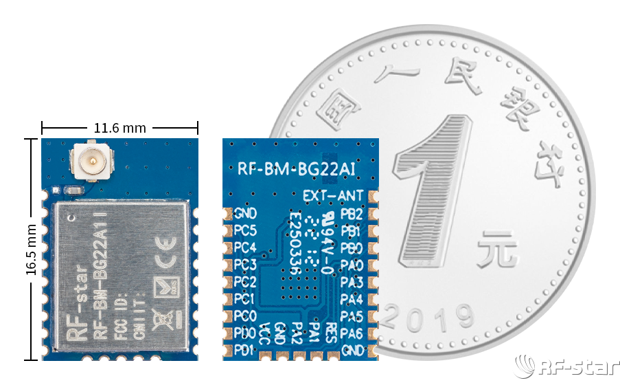 RF-BM-BG22A1I是基于芯科EFR32BG22芯片研發的低功耗藍牙BLE模塊(IPEX版本),支持藍牙5.4,藍牙Mesh,AoA/AoD,2.4GHz專有協議,支持藍牙主從一體串口透傳和I2C透傳,可廣泛應用于智能插座、資產追蹤和信標、消費電子、樓宇自動化、藍牙Mesh低功耗節點和便攜式醫療設備中。