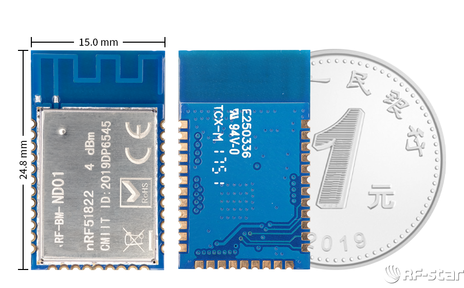 RF- BM-ND01低功耗藍(lán)牙模塊,采用Semiconductor 的nRF51822作為核心處理器。模塊運(yùn)行在2.4 GHz ISM band, GFSK調(diào)制方式(高斯頻移鍵控),40 頻道2MHz的通道間隙,3個(gè)固定的廣播通道,37個(gè)自適應(yīng)自動(dòng)跳頻數(shù)據(jù)通道,物理層可以和經(jīng)典藍(lán)牙RF組合成雙模設(shè)備,2MHz間隙能更好地防止相鄰頻道的干擾。寬輸出功率調(diào)節(jié)(-20 dBm~4dBm),-92.5 dBm高增益接收靈敏度。