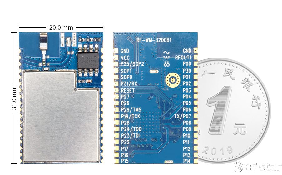 RF-WM-3200B1 模塊是 RF-Star 全新推出的一款嵌入式 Wi-Fi 模塊,該模塊采用 TI 最新的 SimpleLink Wi-Fi CC3200 芯片設計,內置高性能 ARM Cortex-M4 MCU,并包含多種外設,如 并行攝像頭接口,I2S,SD/MMC,UART,SPI,I2C,ADC 和 GPIO。模塊支持 802.11 b/g/n 無 線標準,支持 Station,AP 和 Wi-Fi 直連模式。另外模塊硬件還包含了陶瓷天線、IPEX 座子和天線焊盤等 3 種天線方式可供選擇。