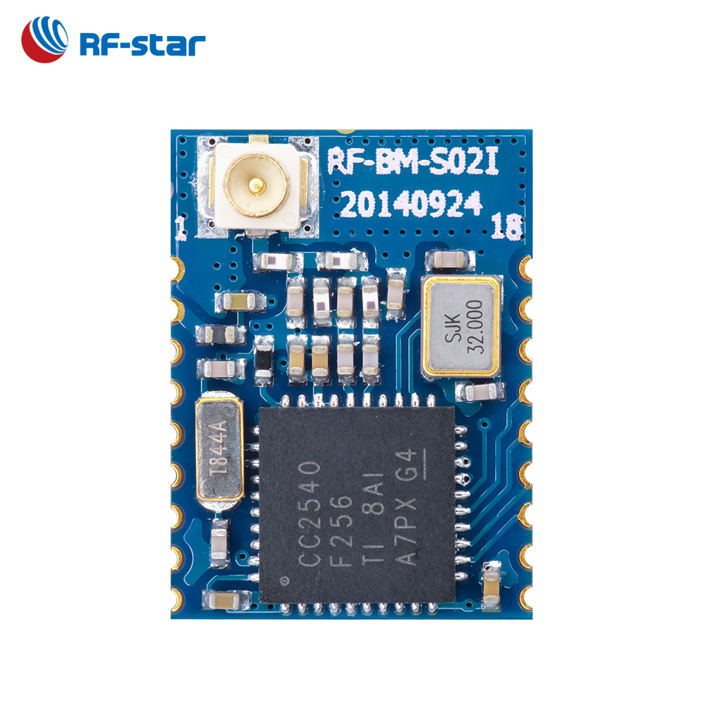 RF-BM-S02I is a Bluetooth Low Energy (BLE) module based on TI CC2540F256, an 8051 core BLE System-on-Chip (SoC). This PCB module integrates a 32 MHz crystal, a 32.768 kHz crystal, an LC balun, an RF matching filter, and a meander line IPEX connector. It is pre-programmed with the BLE 4.0 stack and an application communication protocol over its full-speed USB interface. It can be used to design a USB dongle to easily establish BLE connection from a device to smart phone. Very low-power sleep modes are available. Short transition times between operating modes further enable low power consumption. RF-BM-S02I is pin-compatible with the RF-BM-S02 and RF-BM-S02A in SMT package, if the USB is not used on the RF-BM-S02 & RF-BM-S02I and the I2C/extra I/O is not used on the RF-BM-S02A. Compared to the RF-BM-S02I and RF-BM-S02, the RF-BM-S02A provides lower RF current consumption. The RF-BM-S02A does not have the USB interface of the RF-BM-S02 and RF-BM-S02I, and provides lower maximum output power in TX mode. The RF-BM-S02A also adds a HW I2C interface.