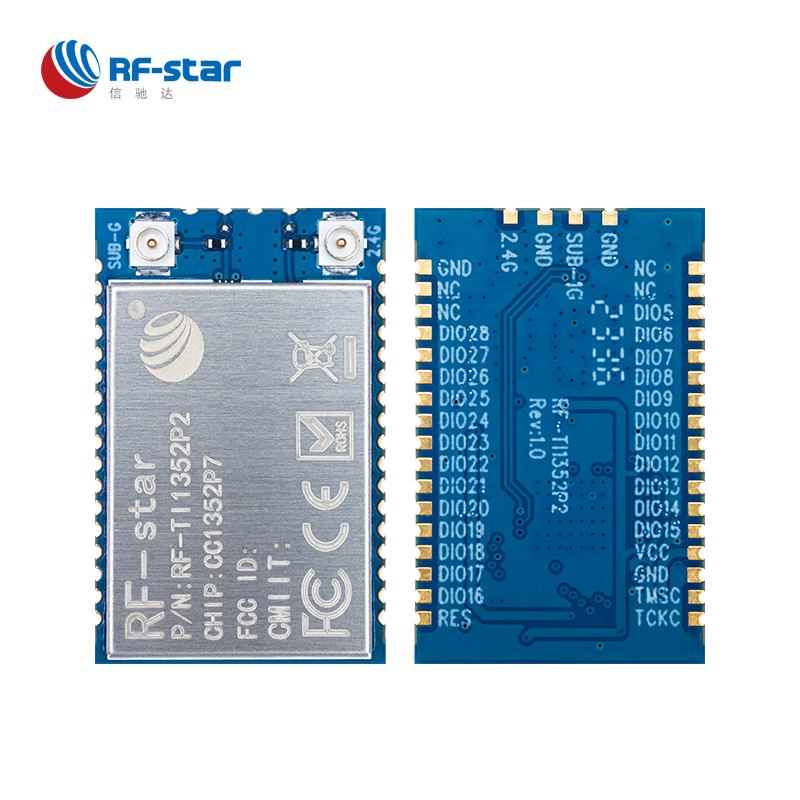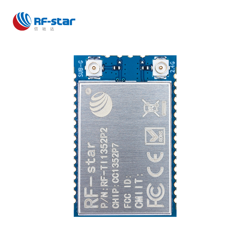 RF-TI1352P2 is RF-star CC1352P7 SimpleLink Sub-1G + 2.4GHz multi-band module with an integrated power amplifier for long-range applications, such as smart meters, wireless environmental sensors, HVAC system controller, gateway, etc.
