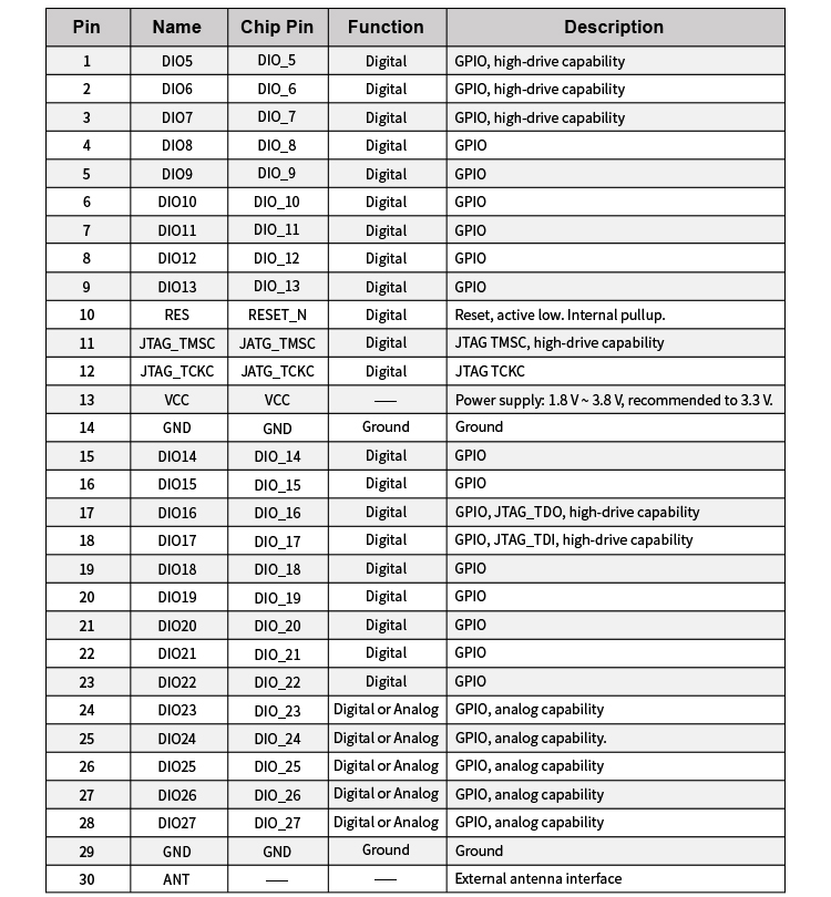 Type of Antenna | RF-BM-2652P4: PCB antenna RF-BM-2652P4I: IPEX connector, ANT pin |